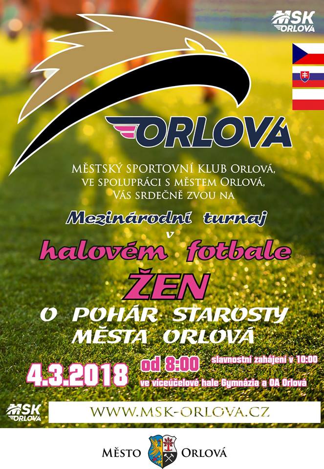 První futsalový turnaj ŽEN O pohár starosty města Orlová proběhne v neděli 04.03.2018 od 09,00 hod ve víceúčelové hale Gymnázia a OA Orlová.